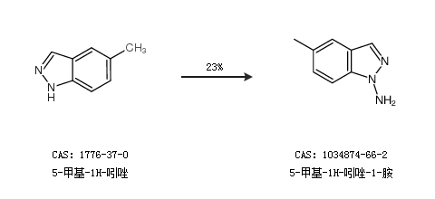 1.通過5-甲基-1H-吲唑合成5-甲基-1H-吲唑-1-胺,收率約23%;