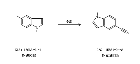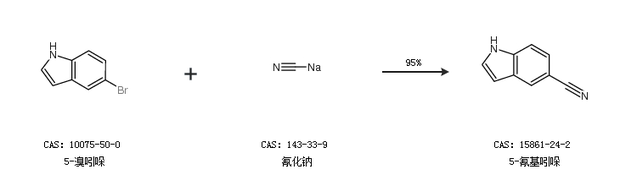 1.通過5-溴吲哚和氰化鈉合成5-氰基吲哚,收率約95%;