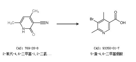 1.通過5-溴-3-氰基-2-羥基-4,6-二甲基吡啶合成5-溴-4,6-二甲基煙酸