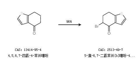 1.通過4,5,6,7-四氫-4-苯并噻吩合成5-溴-6,7-二氫苯并[b]噻吩-4(5h)-酮,收率約96%;