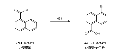 1.通過1-萘甲酸合成5-溴萘-1-甲酸,收率約62%;