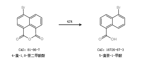 2.通過4-溴-1,8-萘二甲酸酐合成5-溴萘-1-甲酸,收率約42%;