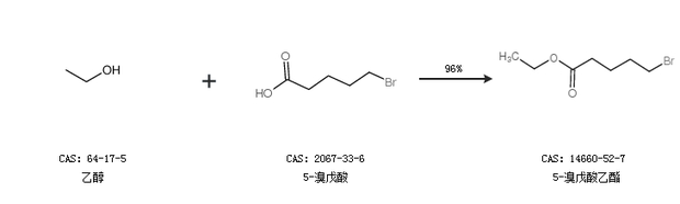 1.通過乙醇和5-溴戊酸合成5-溴戊酸乙酯,收率約96%;