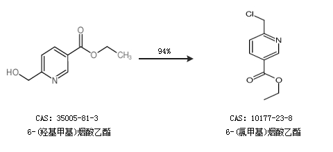 1.通過6-(羥基甲基)煙酸乙酯合成6-(氯甲基)煙酸乙酯,收率約94%;