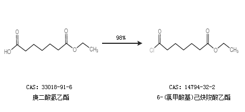 1.通過庚二酸氫乙酯合成6-(氯甲酸基)己炔羧酸乙酯,收率約98%;