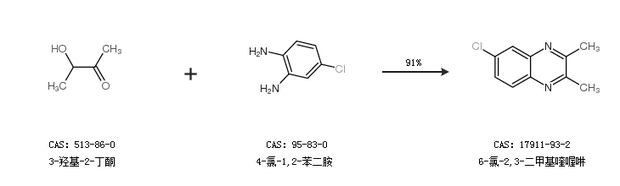 2.通過3-羥基-2-丁酮和4-氯-1,2-苯二胺合成6-氯-2,3-二甲基喹喔啉,收率約91%;