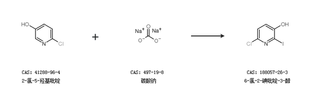 2.通過2-氯-5-羥基吡啶和碳酸鈉合成6-氯-2-碘吡啶-3-醇