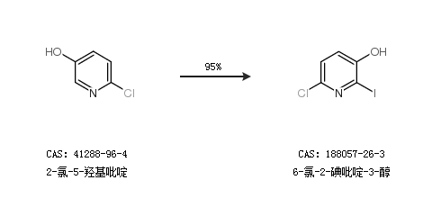 1.通過2-氯-5-羥基吡啶合成6-氯-2-碘吡啶-3-醇,收率約95%;
