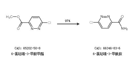 1.通過6-氯噠嗪-3-甲酸甲酯合成6-氯噠嗪-3-甲酰胺,收率約97%;