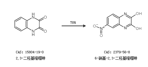 2.通過(guò)2,3-二羥基喹喔啉合成6-硝基-2,3-二羥基喹喔啉,收率約78%;