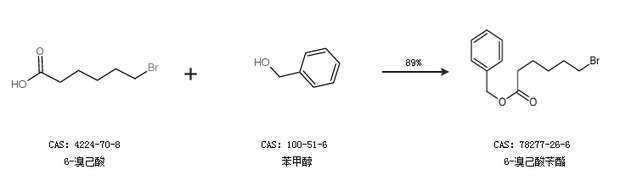 1.通過(guò)6-溴己酸和苯甲醇合成6-溴己酸芐酯,收率約89%;