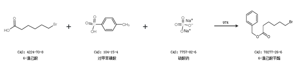 2.通過(guò)6-溴己酸、對(duì)甲苯磺酸和硫酸鈉合成6-溴己酸芐酯,收率約97%;