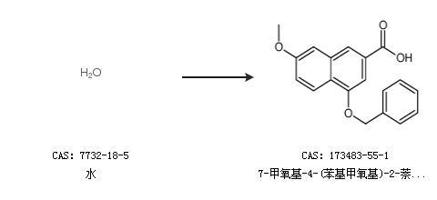 1.通過(guò)水合成7-甲氧基-4-(苯基甲氧基)-2-萘羧酸