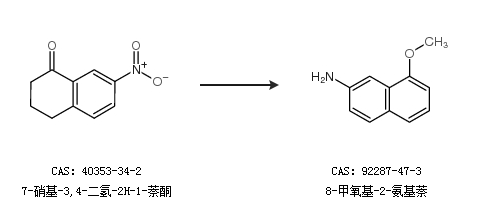 1.通過(guò)7-硝基-3,4-二氫-2H-1-萘酮合成8-甲氧基-2-氨基萘