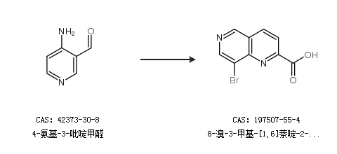 2.通過4-氨基-3-吡啶甲醛合成8-溴-3-甲基-[1,6]萘啶-2-羧酸