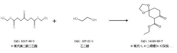 2.通過4-氧代庚二酸二乙酯和乙二醇合成8-氧代-1,4-二噁螺[4.5]癸烷-7-羧酸乙酯