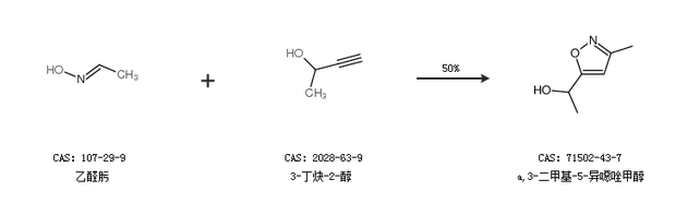 1.通過乙醛肟和3-丁炔-2-醇合成a,3-二甲基-5-異噁唑甲醇,收率約50%;