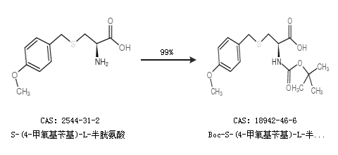 1.通過S-(4-甲氧基芐基)-L-半胱氨酸合成Boc-S-(4-甲氧基芐基)-L-半胱氨酸,收率約99%;