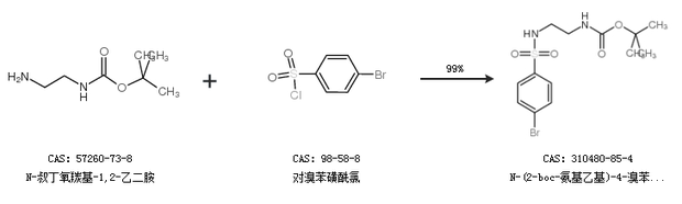 1.通過(guò)N-叔丁氧羰基-1,2-乙二胺和對(duì)溴苯磺酰氯合成N-(2-boc-氨基乙基)-4-溴苯磺酰胺,收率約99%;