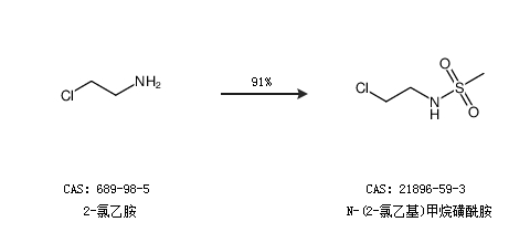 2.通過2-氯乙胺合成N-(2-氯乙基)甲烷磺酰胺,收率約91%;