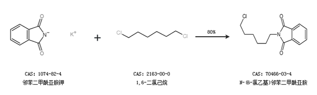 1.通過鄰苯二甲酰亞胺鉀和1,6-二氯己烷合成N-(6-氯乙基)鄰苯二甲酰亞胺,收率約80%;