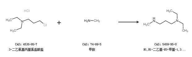1.通過(guò)3-二乙氨基丙基氯鹽酸鹽和甲胺合成N1,N1-二乙基-N3-甲基-1,3-丙二胺