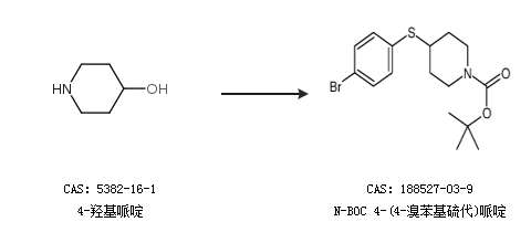 2.通過4-羥基哌啶合成N-BOC 4-(4-溴苯基硫代)哌啶