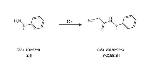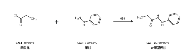 2.通過(guò)丙酰氯和苯肼合成N-苯基丙肼,收率約69%;