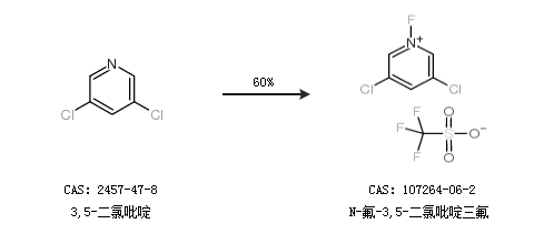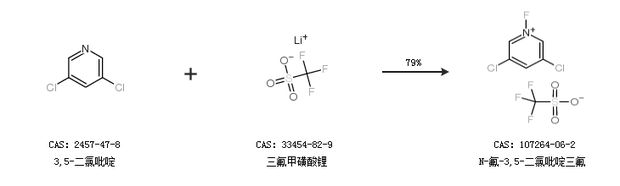 1.通過(guò)3,5-二氯吡啶和三氟甲磺酸鋰合成N-氟-3,5-二氯吡啶三氟,收率約79%;