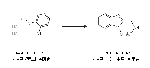 2.通過(guò)N-甲基鄰苯二胺鹽酸鹽合成N-甲基-n-[(1-甲基-1H-苯并咪唑-2-基)甲基]胺鹽酸鹽