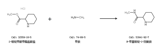 1.通過(guò)2-哌啶甲酸甲酯鹽酸鹽和甲胺合成N-甲基哌啶-2-羧酰胺