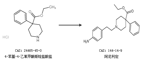 2.通過4-苯基-4-乙氧甲酰哌啶鹽酸鹽合成阿尼利定