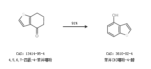 1.通過4,5,6,7-四氫-4-苯并噻吩合成苯并[B]噻吩-4-醇,收率約91%;