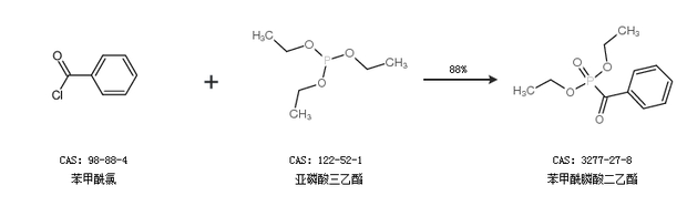 1.通過苯甲酰氯和亞磷酸三乙酯合成苯甲酰膦酸二乙酯,收率約88%;