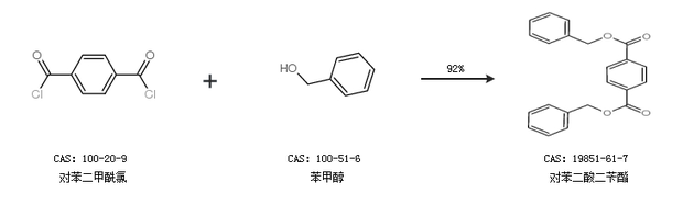 1.通過(guò)對(duì)苯二甲酰氯和苯甲醇合成對(duì)苯二酸二芐酯,收率約92%;