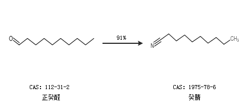 1.通過(guò)正癸醛合成癸腈,收率約91%;