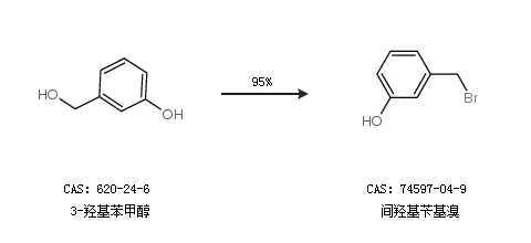 1.通過3-羥基苯甲醇合成間羥基芐基溴,收率約95%;