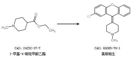1.通過(guò)1-甲基-4-哌啶甲酸乙酯合成氯哌帕生