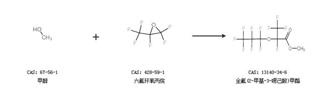 1.通過(guò)甲醇和六氟環(huán)氧丙烷合成全氟(2-甲基-3-噁己酸)甲酯