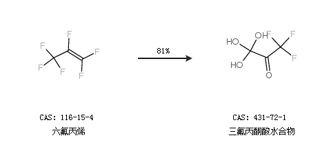 2.通過六氟丙烯合成三氟丙酮酸水合物,收率約81%;