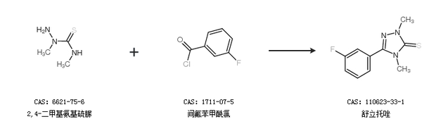 1.通過(guò)2,4-二甲基氨基硫脲和間氟苯甲酰氯合成舒立托唑