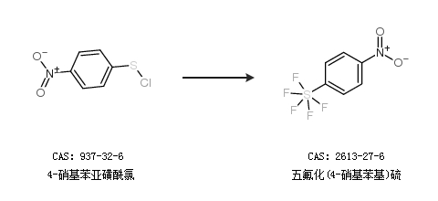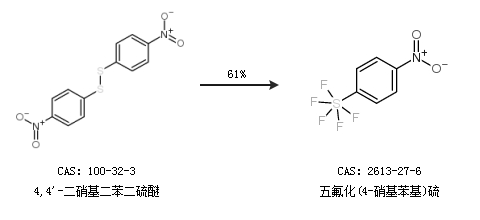 1.通過(guò)4,4''-二硝基二苯二硫醚合成五氟化(4-硝基苯基)硫,收率約61%;