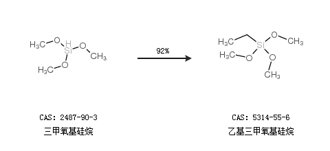 1.通過三甲氧基硅烷合成乙基三甲氧基硅烷,收率約92%;