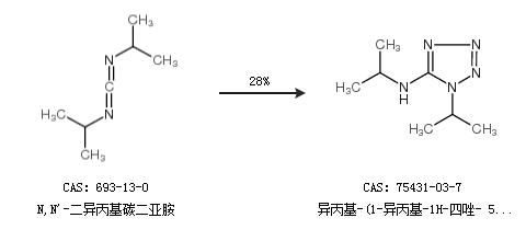 1.通過N,N''-二異丙基碳二亞胺合成異丙基-(1-異丙基-1H-四唑- 5-基)-胺,收率約28%;