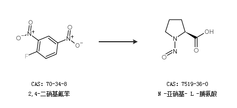 1.通過2,4-二硝基氟苯合成N -亞硝基- L -脯氨酸