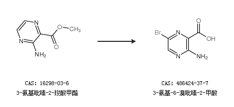2.通過3-氨基吡嗪-2-羧酸甲酯合成3-氨基-6-溴吡嗪-2-甲酸
