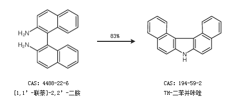 2.通過[1,1’-聯(lián)萘]-2,2’-二胺合成7H-二苯并咔唑,收率約83%;