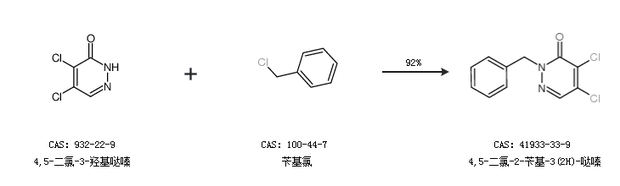 2.通過4,5-二氯-3-羥基噠嗪和芐基氯合成4,5-二氯-2-芐基-3(2H)-噠嗪,收率約92%;