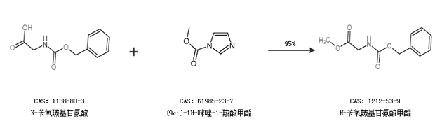 2.通過(guò)N-芐氧羰基甘氨酸和(9ci)-1H-咪唑-1-羧酸甲酯合成N-芐氧羰基甘氨酸甲酯,收率約95%;