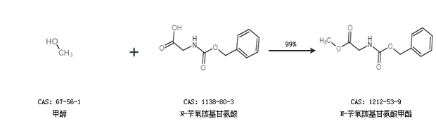 1.通過(guò)甲醇和N-芐氧羰基甘氨酸合成N-芐氧羰基甘氨酸甲酯,收率約99%;